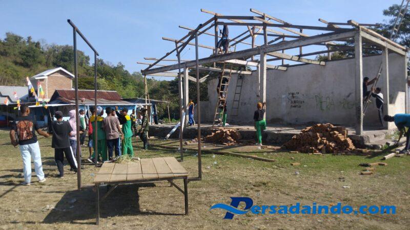 Proses rehabilitasi melibatkan perbaikan struktur kayu, besi, dan atap yang rusak, serta pembersihan area tribun. Warga terlihat antusias, bahu-membahu bersama personel Satgas TMMD.