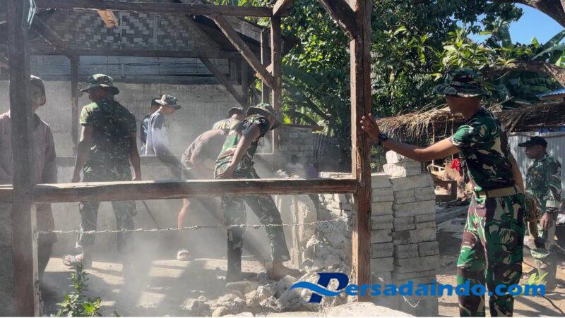 Dengan semangat kebersamaan, personel Satgas dibantu warga setempat melakukan pembongkaran bagian dinding batako yang rusak dan sudah tidak aman untuk dihuni. Setelah pembongkaran selesai, tahap berikutnya adalah pembangunan ulang struktur rumah yang lebih kuat dan layak.