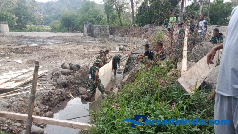 Pada tahap ini, Satgas TMMD bersama masyarakat setempat tengah fokus melaksanakan pengecoran sayap bendungan sebagai bagian penting dari penyelesaian struktur utama. Kegiatan fisik tersebut dilakukan secara gotong royong dengan semangat kebersamaan antara personel TNI dan warga, demi mempercepat penyelesaian target pekerjaan sesuai waktu yang telah direncanakan.