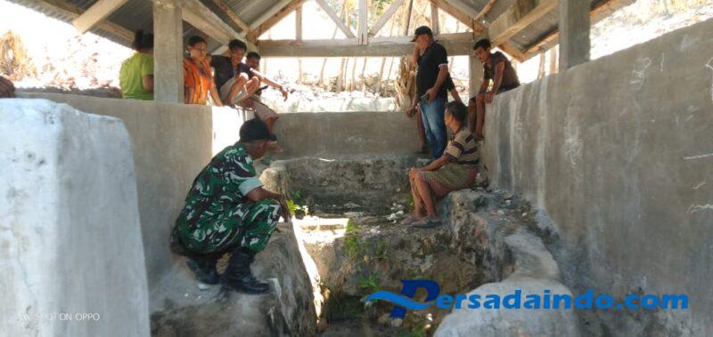Rote Ndao – Babinsa Koramil 1627/RN, Serda Roni Riberu, melaksanakan kegiatan gotong royong bersama masyarakat dalam pemasangan pipa air dari sumber mata air menuju bak penampungan, pada Kamis (2/10/2025) pukul 11.00 WITA di Dusun Dapekoen RT 10/RW 05, Desa Sonimanu, Kecamatan Pantai Baru, Kabupaten Rote Ndao.
