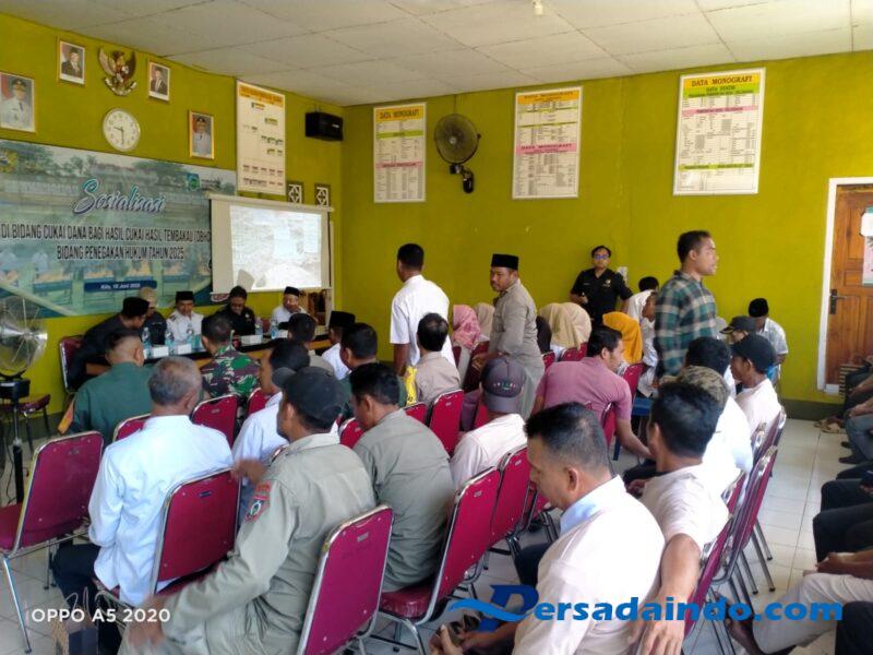 Dompu, NTB – Dalam rangka meningkatkan kesadaran masyarakat tentang pentingnya mematuhi aturan peredaran hasil tembakau serta memerangi rokok ilegal, Pemerintah Kabupaten Dompu melalui kegiatan Sosialisasi Dana Bagi Hasil Cukai Hasil Tembakau (DBH-CHT) menggelar pertemuan di Aula Kantor Desa Mbuju, Kecamatan Kilo, Kamis (19/06/2025). Kegiatan ini dihadiri langsung oleh Wakil Bupati Dompu, Syahrul Parsan, ST., MM., bersama unsur TNI dari Koramil 1614-04/Kilo yang turut berperan aktif dalam menyukseskan acara tersebut.