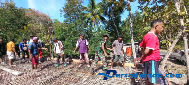 Lembata – Babinsa Koramil 1624-04/Omesuri, Serda Salahuddin dan Serda Julkiflin, melaksanakan monitoring wilayah sekaligus bergabung bersama warga Desa Balauring, Kecamatan Omesuri, Kabupaten Lembata, dalam kegiatan kerja bakti pengecoran rumah warga. Sabtu, 9 Agustus 2025.