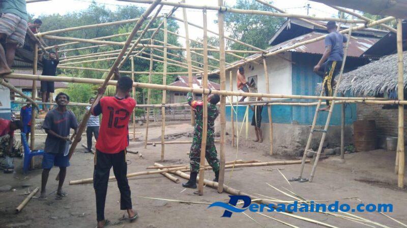 NTT — ALOR —, Babinsa Desa Bandar, Kecamatan Pantar, Kabupaten Alor, Praka Kristianto Serang melaksanakan kegiatan pemantauan wilayah sekaligus membantu masyarakat pada Senin, 08 September 2025. Kegiatan tersebut berlangsung di halaman rumah Bapak Musa Wenni, RT 005/RW 003 Desa Bandar, dalam rangka persiapan acara syukuran Sidi Baru.