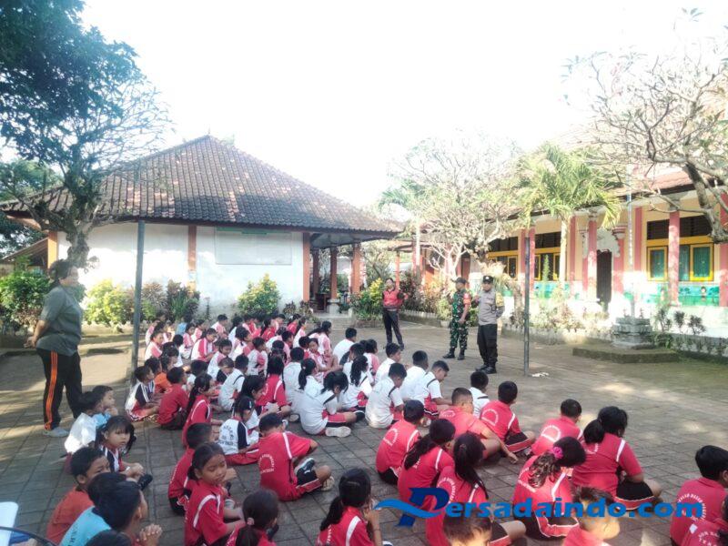 Seperti halnya yang terlihat di SDN Sampalan Tengah saat anggota Koramil 1610-03/Dawan Serka Made Arta memberikan pelatihan PBB, Jumat ( 25/07/25 ).