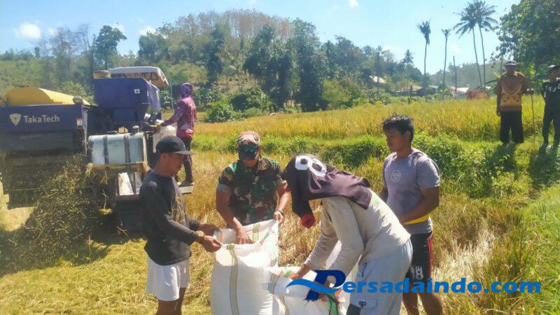 Dompu, NTB — Dalam rangka mendukung program pemerintah dalam mewujudkan ketahanan pangan nasional, Babinsa Desa Mangge Asi, Koramil 1614-01/Dompu, Pelda Suratman, melaksanakan pendampingan kegiatan panen padi milik Kelompok Tani So Dungga di wilayah binaannya, tepatnya di Desa Mangge Asi, Kecamatan Dompu, Kabupaten Dompu, pada Minggu, 20 Juli 2025.