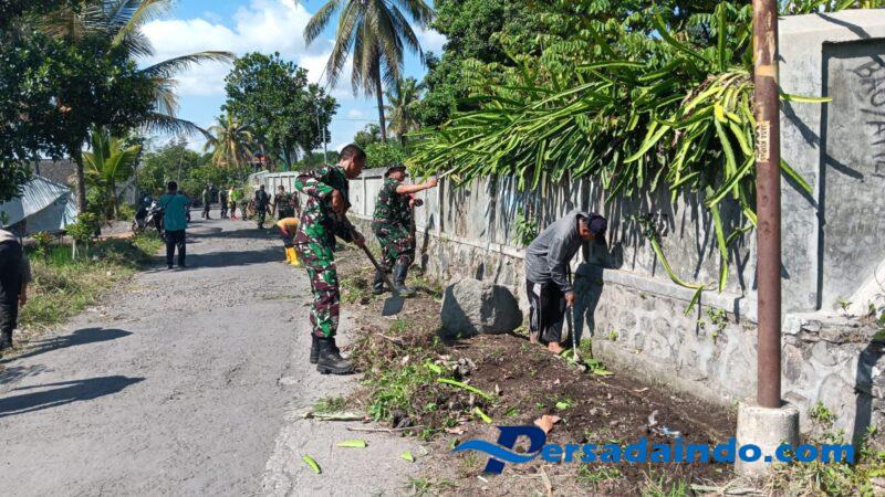 Kegiatan ini melibatkan anggota Koramil, unsur pemerintahan desa, serta masyarakat setempat yang bersama-sama bergotong royong membersihkan area pemakaman dan selokan di sekitarnya.