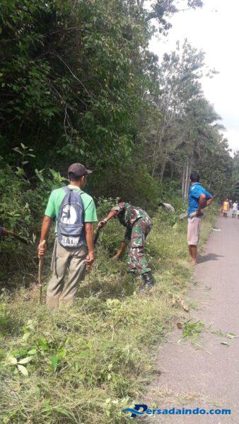 Aksi gotong royong tersebut menyasar pembersihan rumput liar, sampah, dan tumpukan tanah yang menutupi bahu jalan. Selain memperindah lingkungan, kegiatan ini juga bertujuan untuk meningkatkan keselamatan dan kelancaran akses transportasi masyarakat setempat. Kehadiran Babinsa di tengah warga menambah semangat kerja bakti, memperkuat solidaritas dan kebersamaan.