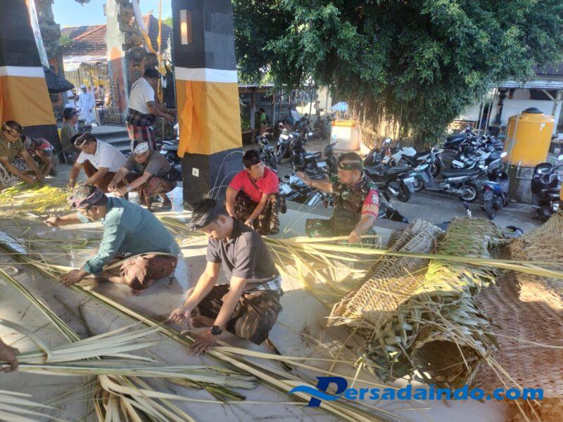 • TNI Dukung Adat dan Budaya, Babinsa Busungbiu Ikut Ngayah Persiapan Odalan