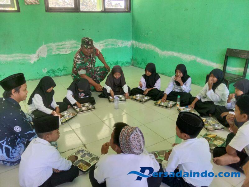 Sumbawa Barat, NTB – Dalam rangka mendukung program pemerintah dalam meningkatkan kualitas gizi dan kesehatan anak-anak sekolah dasar, Babinsa Koramil 1628-03/Seteluk, Sertu M. Nasir, melaksanakan pendampingan kegiatan Program Makan Bergizi Gratis (MBG) yang berlangsung di SDN 2 Seteluk, Desa Tapir, Kecamatan Seteluk, Kabupaten Sumbawa Barat, pada Jumat (24/10/2025) pukul 08.30 WITA.