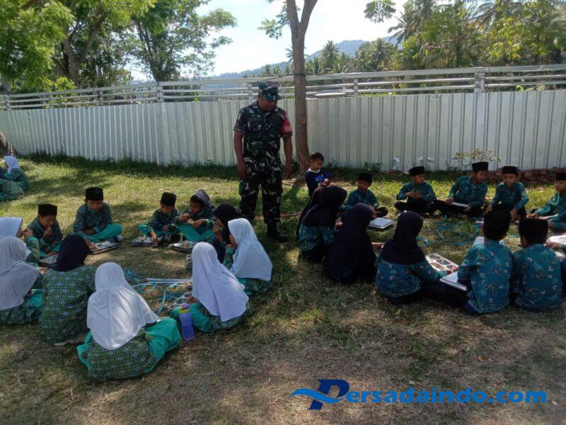 Sumbawa Barat – NTB, Dalam rangka mendukung program pemerintah untuk meningkatkan kesehatan dan gizi anak sekolah, Babinsa Desa Tapir, Koramil 1628-03/Seteluk, Sertu M. Nasir, melaksanakan pendampingan kegiatan Program Makan Sehat Bergizi (MSG) yang berlangsung di Madrasah Ibtidaiyah (MI) Adaqwah, Desa Tapir, Kecamatan Seteluk, Kabupaten Sumbawa Barat, pada Kamis (9/10/2025).