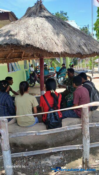 Dalam kegiatan yang penuh tanggungjawab, Babinsa melaksanakan Komunikasi Sosial (Komsos) bersama sejumlah mahasiswa Universitas Timor (Unimor) yang sedang melakukan wawancara dengan Kepala Desa Usapinonot terkait kegiatan penelitian dan tugas kuliah mereka.