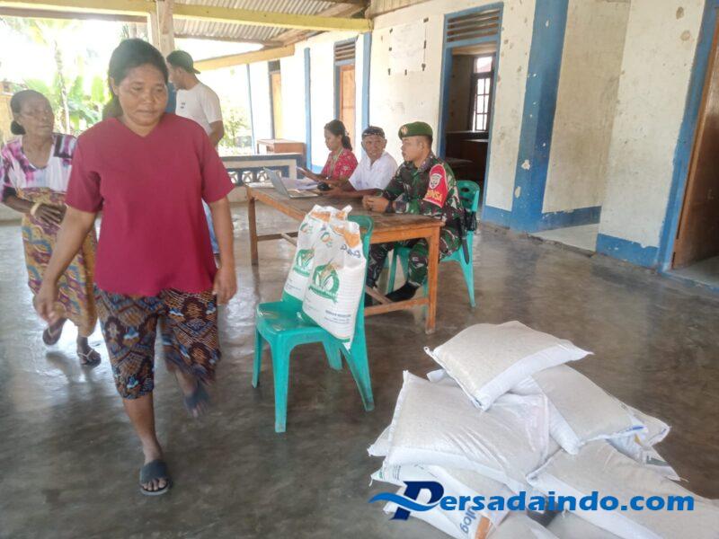 Ende, Dalam rangka memastikan proses penyaluran bantuan pangan berjalan aman dan tepat sasaran, Babinsa Koramil 1602-04/Maurole, Pratu Yudha Santoso, melaksanakan kegiatan pengawasan dan pengamanan distribusi Bantuan Pangan Cadangan Beras Pemerintah (CBP) di Desa Aewora, Kecamatan Maurole, Kabupaten Ende, Selasa (6/8/2025) mulai pukul 09.30 WITA.