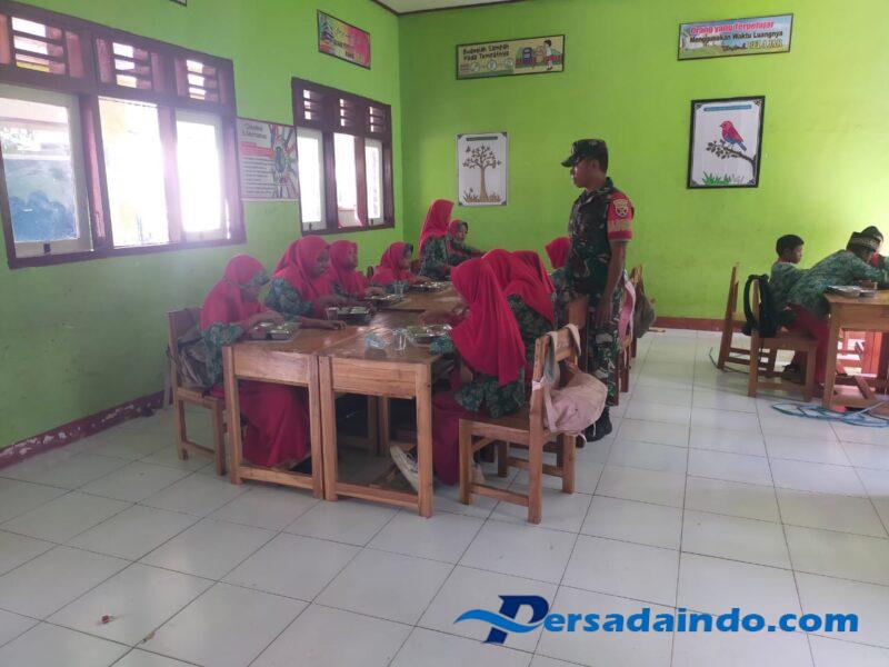 Dalam kesempatan tersebut, Serda Sulaiman ikut membantu membagikan makanan bergizi kepada para siswa serta memberikan motivasi agar anak-anak rajin belajar dan menjaga kesehatan.