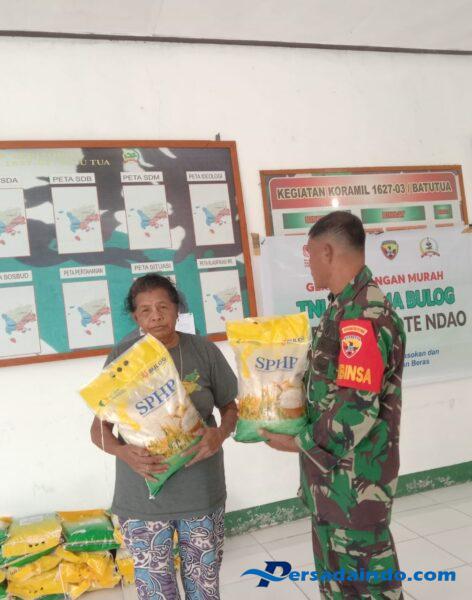 Rote Ndao-Pada hari Sabtu, 18 Oktober 2025 pukul 12.30 Wita, bertempat di Kantor Koramil 1627-03/Batutua, Kecamatan Rote Barat Daya, Kabupaten Rote Ndao, Babinsa Kerja Armindo Da Silva yang bertugas sebagai piket Koramil melaksanakan kegiatan penjualan beras SPHP (Stabilisasi Pasokan dan Harga Pangan).