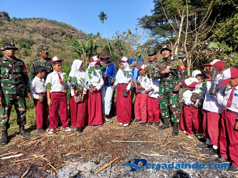 Kota Bima — Dalam rangka menyambut Hari Ulang Tahun Republik Indonesia yang ke-80, Koramil 1608-01/Rasanae bersama masyarakat dan pelajar melaksanakan kegiatan penanaman pohon keras dan buah di lingkungan Busu RT 16 RW 05, Kelurahan Ntobo, Kecamatan Raba, Kota Bima, Senin (4/8/2025). Kegiatan ini mengusung tema “Merawat Asa, Menyatu dengan Alam”, sebagai bentuk kepedulian terhadap kelestarian lingkungan, khususnya di sekitar sumber mata air Telaga.