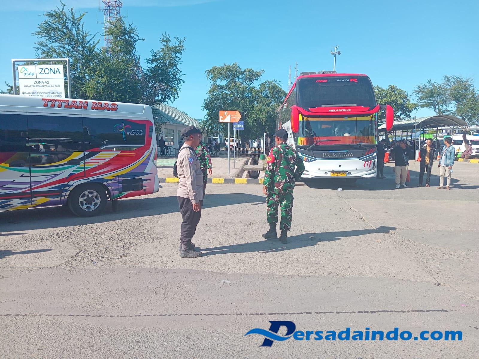 Sumbawa Barat, NTB – TNI-POLRI Bersinergi gabungan Anggota Pos Terpadu Ops Ketupat Renjani tahun 2025 Pantau Situasi Dan Kondisi dan pengamanan obyek Vital Pelabuhan Poto Tano Pada Harus Balik Hari Raya Idul Fitri tahun 2025. bertempat di Pelabuhan Poto Tano kecamatan Poto Tano Kabupaten Sumbawa Barat.