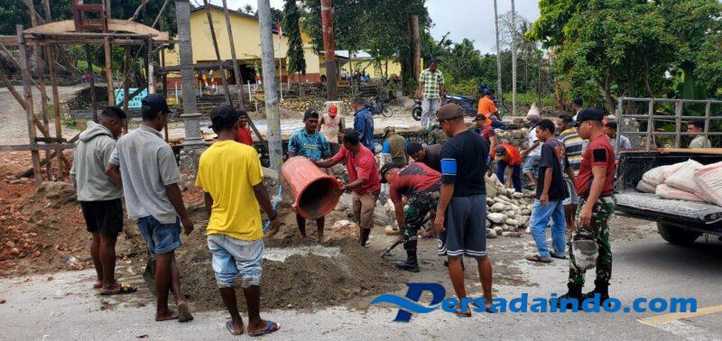• Toleransi Umat Beragama, Pos Fatuha Satgas Yonif 741/GN Bantu Masyarakata Bangun Gapura Gereja Salib Suci