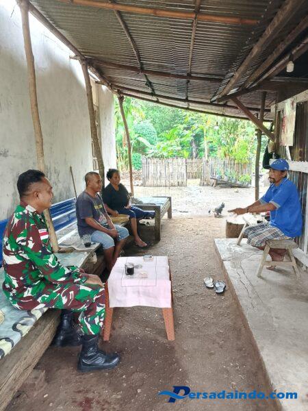 NTT-NAIKLIU – Untuk mewujudkan Keamanan dan ketertiban masyarakat (Kamtibmas) yang aman dan damai serta memiliki ketersediaan pangan yang cukup, Babinsa Serda Decky Sufmera melaksanakan kegiatan komunikasi sosial (Komsos) dengan Tokoh masyarakat (Tomas) Bapak Edison Selan, di RT.006 Duaun 2, Desa Soliu, Kecamatan Amfoang Barat Laut, Kabupaten Kupang, Selasa (13/5/2025).