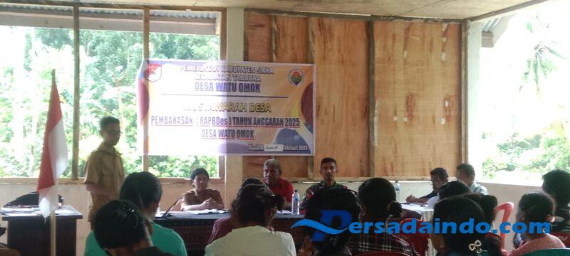 NTT SIKKA — Dalam rangka mendukung program pembangunan desa yang transparan dan partisipatif, Babinsa Koramil 1603-02/Talibura Kodim 1603/Sikka, Praka Yosep, menghadiri kegiatan Musyawarah Rencana Kerja Pemerintah Desa (RKPDes) yang digelar di Desa Watu Onok, Kecamatan Talibura, pada Senin (3/11/2025).
