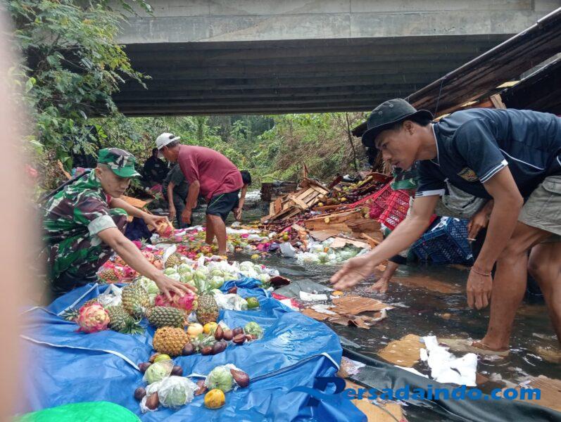 Sumbawa Barat, 26 Agustus 2025 – Babinsa Desa Talonang Baru, Serda Aden Syahbudin, melakukan pengecekan di lokasi kecelakaan tunggal sebuah truk engkel bermuatan buah-buahan dengan nomor polisi P 9317 VG yang terguling di tanjakan Sigeronong, jalur menuju Desa Talonang Baru, pada pukul 08.50 WITA.