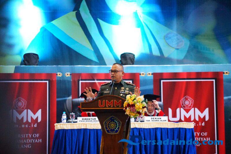 Malang – Dandim 1607/Sumbawa, Letkol Kav Basofi Cahyowibowo, S.T., didampingi sang istri, Ny. Fani Basofi Cahyowibowo menghadiri dan memberikan Success Story sebagai salah satu alumni Universitas Muhammadiyah Malang (UMM) pada Sidang Senat Terbuka Wisuda ke-120 Tahun 2025.