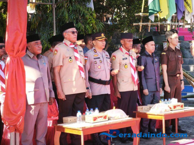 Upacara yang berlangsung khidmat tersebut dihadiri oleh jajaran Forkopimda, pejabat daerah, unsur TNI-Polri, organisasi Pramuka, pelajar, dan masyarakat.