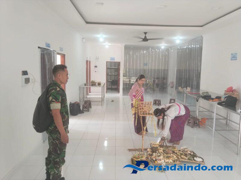 Klungkung,- Babinsa Sampalan Kelod Koramil 1610-03/Dawan Kopda gede Angga menghadiri kegiatan upacara pecaruan bangunan SPPG Sarining Mertha Dewata, Senin ( 29/09/25 ).