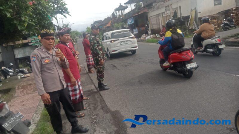 Pagi ini, kami tiga pilar turun langsung untuk memastikan keamanan, ketertiban serta kelancaran persembahyangan warga dalam upacara rsi gana ini, “ucap Serka Nengah.