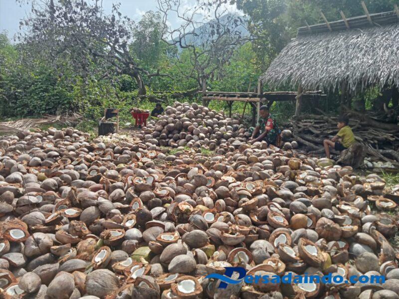 Di sela kegiata Koptu Lukas mengatakan “Sebagai Babinsa kita merasa senang dan bangga selain bisa menjaga keamanan di Desa juga dapat membantu dan mendukung perekonomian warga salah satunya dengan mengupas kelapa yang akan dijadikan kopra.”