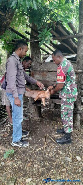 Dalam kegiatan tersebut, Babinsa turut mendampingi Kepala Dusun 3, Bapak Abner Boymau, bersama Pegawai Peternakan Kabupaten Kupang, Bapak Benny Tikan. Selain pemberian vaksin pada sapi dan babi, tim peternakan juga melakukan pengecekan kondisi kandang serta memberikan edukasi kepada warga terkait pola pemeliharaan hewan yang baik untuk mencegah penyebaran penyakit.
