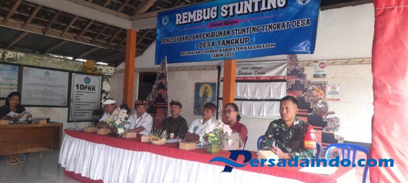 KARANGASEM – Dukung upaya pencegahan penanganan stunting Babinsa Desa Tangkup Koramil 1623-04/Sidemen Sertu I Ketut Suartana menghadiri kegiatan rembug stunting, di Aula Kantor DesaTangkup Kec.Sidemen Kab.Karangasem, pada Kamis (07/08/25).