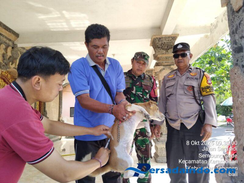 Tabanan – Dalam rangka mencegah penyebaran penyakit rabies, Babinsa Desa Sembung Gede, Koramil 1619-05/Kerambitan, Serma Trisnawan turut serta mendampingi kegiatan vaksinasi massal rabies yang digelar oleh Dinas Kesehatan Hewan (Dinkeswan) Kabupaten Tabanan. Kegiatan ini dilaksanakan di Desa Sembung Gede, Kec. Kerambitan, dengan jumlah hewan peliharaan yang berhasil divaksin sebanyak 162 ekor anjing dan 6 ekor kucing, Rabu (8/10/2025)