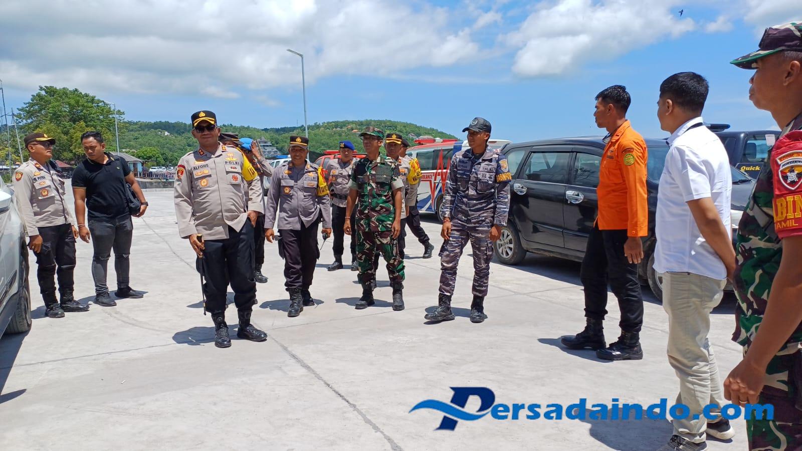 Klungkung,- Wadanramil 1610-04/Nusa Penida Kapten Inf Gede Putrayadnya mendampingi kunjungan Kapolres Klungkung AKBP Alfons WP Letsoin di Pos Terpadu Angkutan Laut Lebaran Tahun 2025 Pelabuhan Banjar Nyuh Desa Ped Kecamatan Nusa Penida, Sabtu ( 05/04/25 ).
