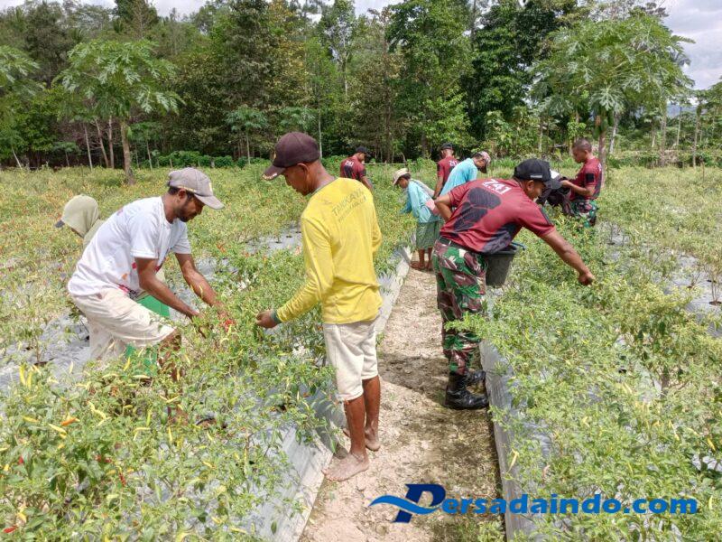 Belu – Pos Turiskain terjun langsung ke lapangan untuk membantu petani dalam panen cabai di Dusun Siarai, Desa Maumutin Kecamatan Raihat, Kabupaten Belu. Selasa (15/07/2025).