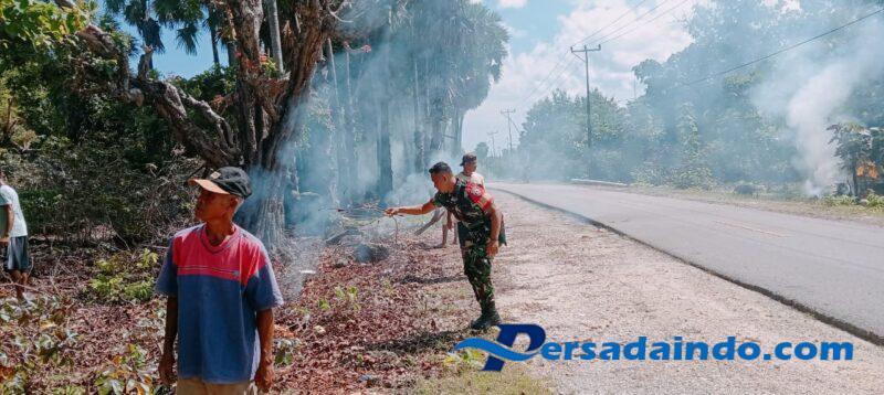 NTT Rote Ndao Dalam rangka menjaga kebersihan lingkungan, Pemerintah desa bersama Babinsa dan warga menggelar karya bakti pembersihan sampah di Desa Tungganamo , Kecamatan Pantai Baru, Kabupaten Rote Ndao.Jumat 25/4/2025