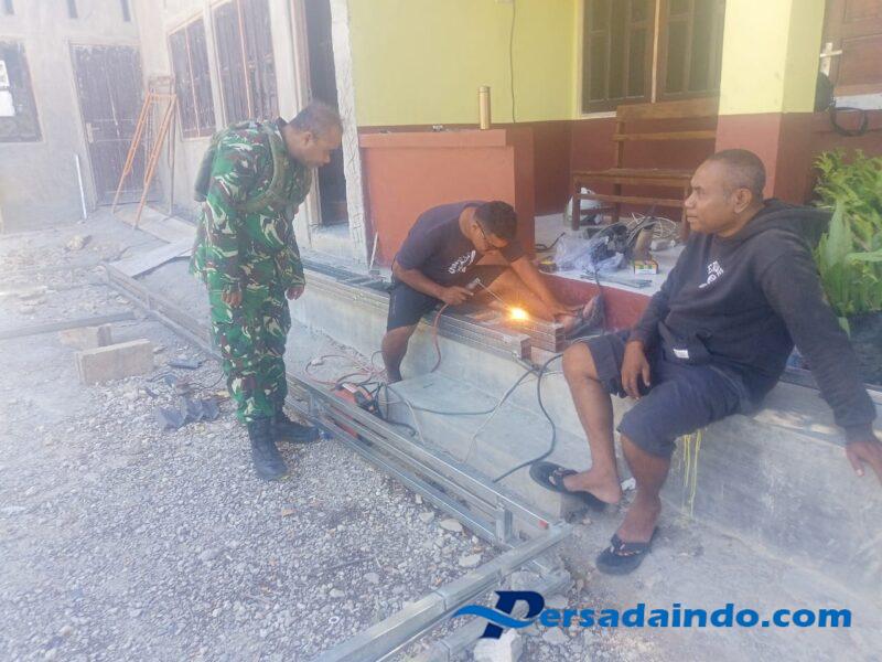 NTT-KUPANG, – Babinsa Baumata Koramil 1604-01/Kupang, Sertu Saaltial Lang, menunjukkan kepeduliannya terhadap pembangunan desa dengan membantu tukang melaksanakan pengelasan besi untuk pembuatan teras aula Kantor Desa Baumata, Kecamatan Taibenu, Kabupaten Kupang. Kehadirannya tidak hanya memberikan bantuan tenaga, tetapi juga menjadi wujud nyata kemanunggalan TNI dengan rakyat. Selasa (09/09/2025).
