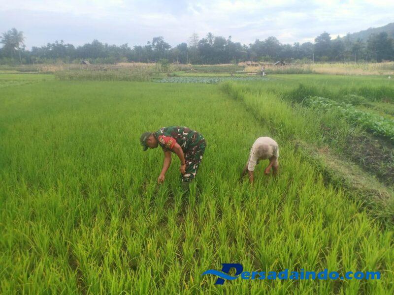 • Wujud Kemanunggalan TNI, Babinsa Hulnani Gotong Royong Bersama Petani Aimoli