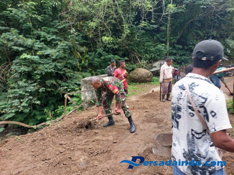 • Wujud Kemanunggalan TNI-Rakyat, Babinsa Gelar Karya Bakti di Desa Wolomotong