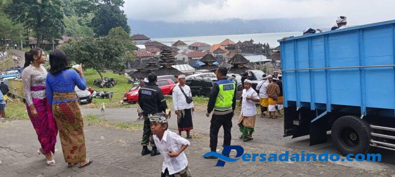Bangli – Dalam rangka mendukung kelancaran pelaksanaan Upacara Upasaksi Karya/Piodalan di Pura Pancering Jagat, Desa Trunyan, Kecamatan Kintamani, Babinsa Desa Landih, Koramil 01/Bangli, Kodim 1626/Bangli, Serma I Komang Juni Suantara bersama Bhabinkamtibmas Desa Landih dan Pecalang Desa Adat Landih melaksanakan pengawalan dan pengamanan iring-iringan warga Desa Adat Landih kemarin. Minggu (8/6/25).