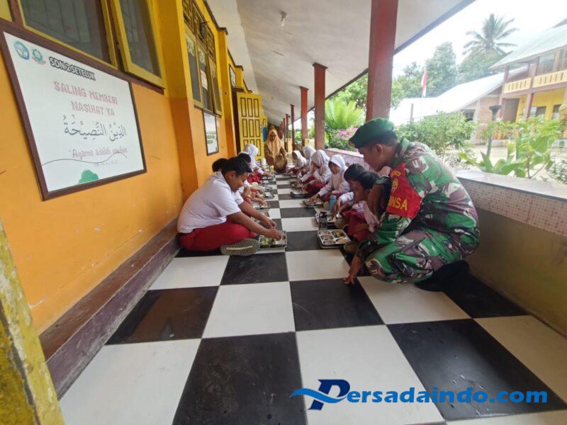 Sumbawa Barat – NTB, Babinsa Desa Persiapan Seteluk Rea, Koramil 1628-03/Seteluk, Serda Muhammad Hidir, menunjukkan kepeduliannya terhadap generasi penerus dengan mendampingi pelaksanaan Program Makan Bergizi Gratis (MBG) di SDN 2 Seteluk, Kecamatan Seteluk, Kabupaten Sumbawa Barat, Selasa (16/9/2025).
