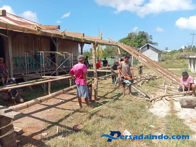 Dalam kegiatan tersebut, Babinsa turut membantu warga membangun kawarung sementara sebagai sarana pendukung dalam rangka pelaksanaan kegiatan adat kawin mawin di desa setempat. Kehadiran Babinsa merupakan wujud kepedulian dan kedekatan TNI dengan masyarakat, sekaligus mempererat hubungan silaturahmi.