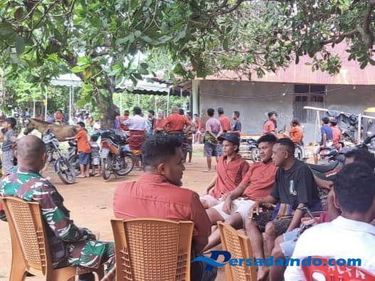 SUMBA BARAT – Babinsa Koramil 01/Loli Kodim 1613/Sumba Barat, Serda Martin Jaga Limu, melaksanakan komunikasi sosial (Komsos) tentang keamanan dan ketertiban masyarakat (Kamtibmas) bersama warga di lokasi acara pesta Desa Lokory, Kecamatan Tanarighu, Kabupaten Sumba Barat, Sabtu (29/11/2025).