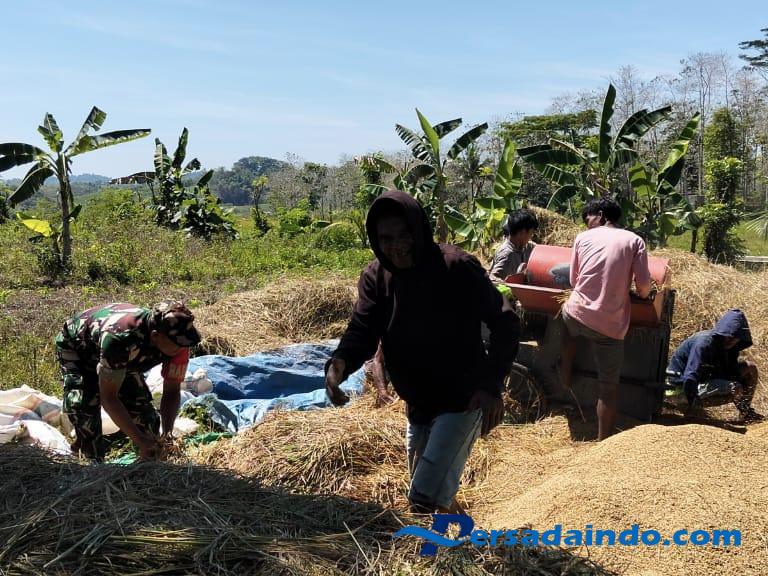 Selain membantu warga dalam kegiatan rontok padi, Sertu Juaqim juga memanfaatkan kesempatan itu untuk memberikan motivasi kepada para petani agar terus bersemangat meningkatkan hasil pertanian.