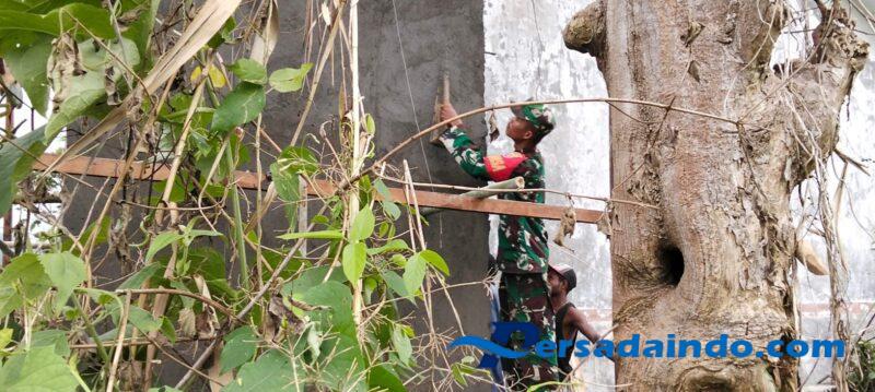 Dalam kegiatan pemantauan tersebut, Babinsa melihat sejumlah warga yang tengah melaksanakan pembangunan fasilitas WC untuk TK setempat. Warga yang terlibat antara lain Bapak Yanus dan Bapak Imanuel yang dengan gotong royong berupaya meningkatkan sarana prasarana pendidikan bagi anak-anak di desa.