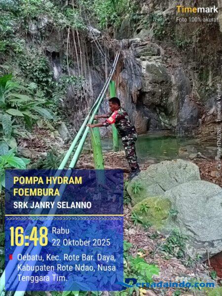 Rote Ndao – Dalam rangka menjaga kedekatan dengan masyarakat dan memastikan sarana prasarana desa berfungsi optimal, Babinsa Koramil 1627-03/Batutua Serka Janry Selanno melaksanakan kegiatan pemantauan wilayah, komunikasi sosial (Komsos) dengan warga, serta kontrol operasional Pompa Hydram program TNI Manunggal Air tahun 2022, bertempat di Dusun Lemurik, Desa Persiapan Foembura, Kecamatan Rote Barat Daya, pada Rabu (22/10/2025) pukul 16.25 WITA.