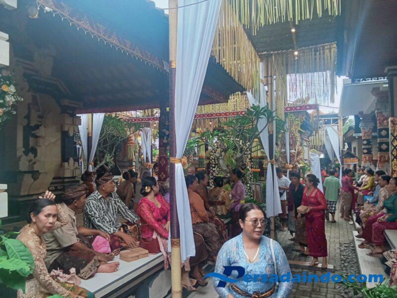 Dalam suasana penuh kebersamaan, tamu undangan datang silih berganti memberikan doa restu kepada kedua mempelai. Untuk mendukung kelancaran acara, Babinsa bersama Bhabinkamtibmas dan Pecalang aktif mengatur lalu lintas di depan lokasi upacara sehingga arus kendaraan tetap lancar dan aman.