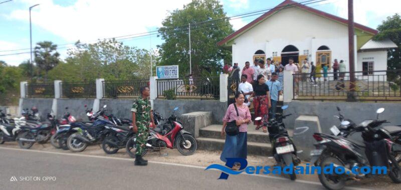 Rote Ndao – Dalam rangka menjaga keamanan dan ketertiban selama pelaksanaan ibadah, Babinsa Koramil 1627-02/Pantai Baru Serda Roni Riberu melaksanakan pengamanan kegiatan Misa Hari Minggu di Gereja Katolik St. Petrus, Kelurahan Olafulihaa, Kecamatan Pantai Baru, Kabupaten Rote Ndao, pada Minggu (12/10/2025) pukul 08.00 WITA.