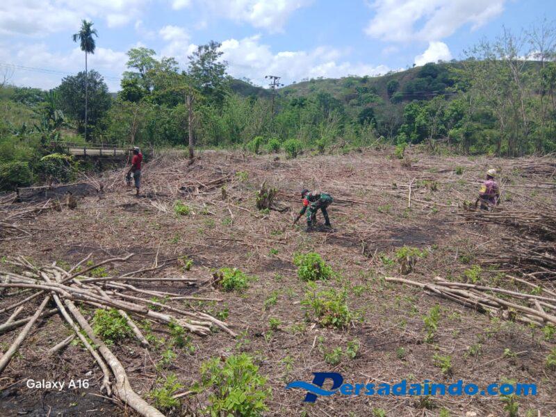 NTT-Sumba Timur,Babinsa Koramil 04/Tabundung, Kodim 1601/Sumba Timur,Pratu Denis Nderu Peta melaksanakan kegiatan pendampingan warga binaan dalam pembersihan lahan di Desa Bangga Watu, Kecamatan Tabundung, Kabupaten Sumba Timur,pada Jumat (10/10/2025).