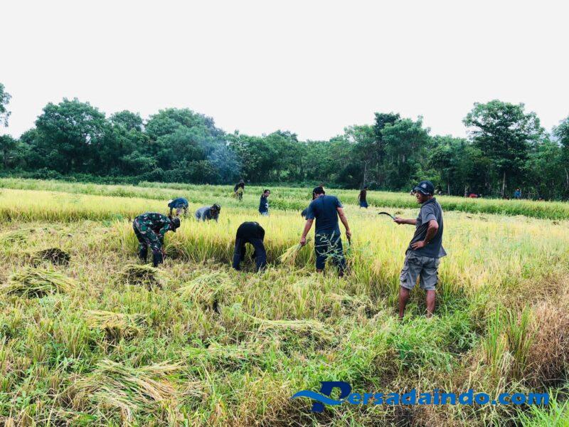 NTT-Sumba Timur,Babinsa Koramil 06/Karera, Kodim 1601/Sumba Timur Pratu Hezron Wora, melaksanakan kegiatan monitoring wilayah binaan sekaligus membantu masyarakat dalam kegiatan panen padi di Desa Nggongi, Kecamatan Karera, Kabupaten Sumba Timur, pada Sabtu (11/10/2025).