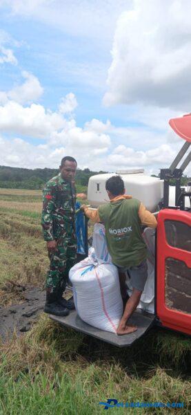 NTT-Sumba Timur.Babinsa Koramil 03/Pahunga Lodu, Kodim 1601/Sumba Timur, Praka Ferdinan Mukuron, turut serta mendampingi para petani di Desa Kaliuda, Kecamatan Pahunga Lodu, Kabupaten Sumba Timur dalam kegiatan panen padi dengan menggunakan mesin panen modern.Rabu (12/11/2025).